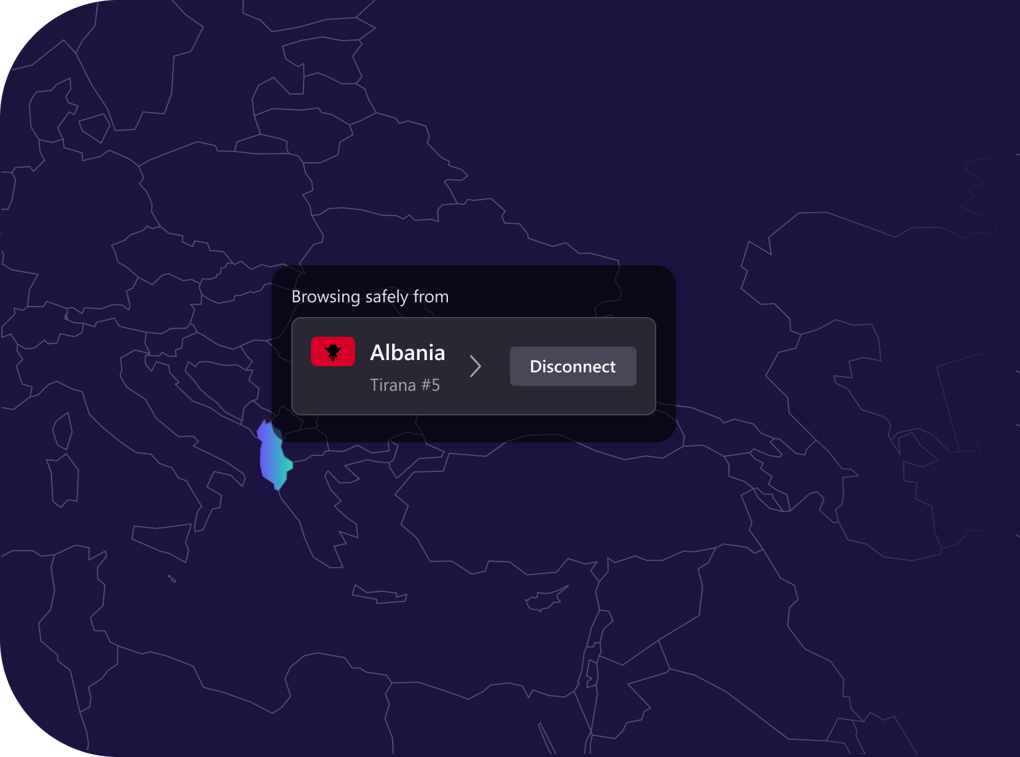 Connect to an Albanian server to surf the internet with ease, privacy, and security.