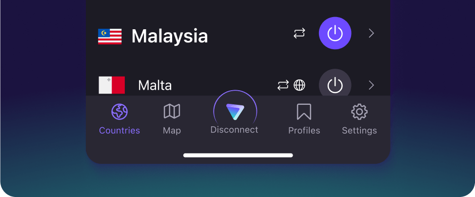 Connect to a VPN server in Malaysia to securely browse the internet.