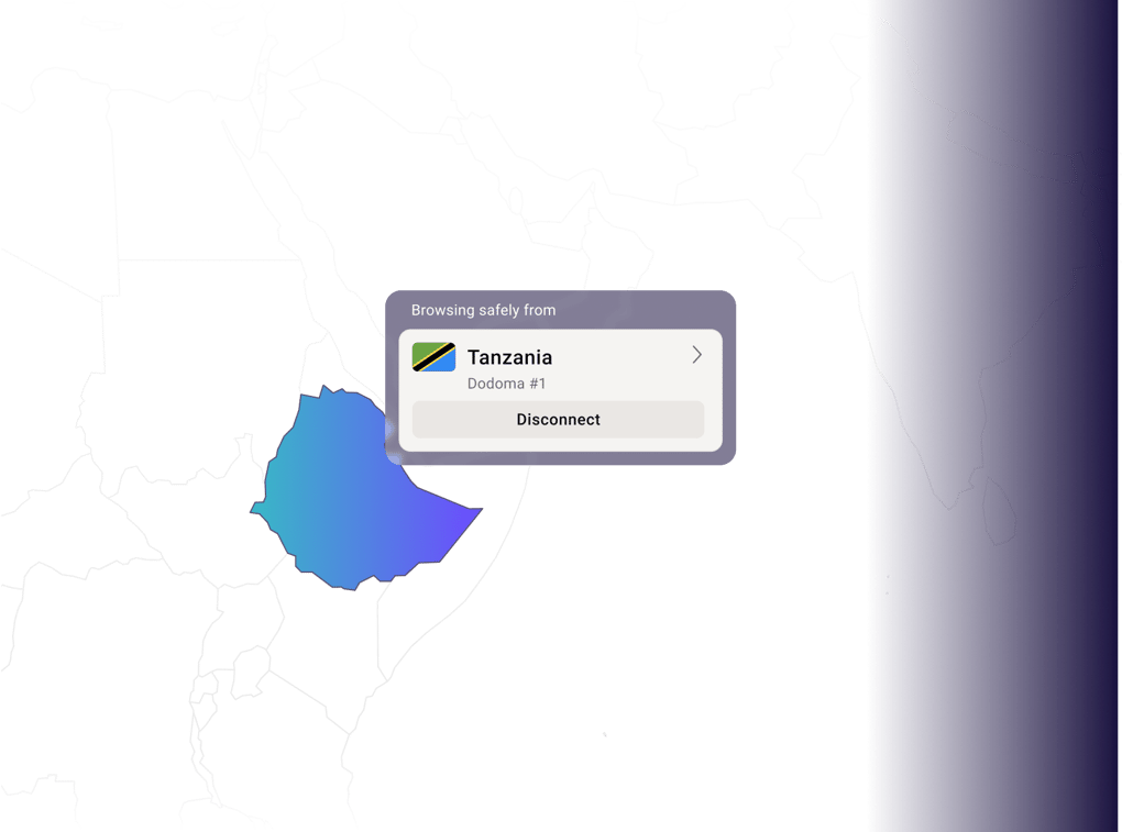 Connect to a Tanzanian server to surf the internet with ease, privacy, and security.