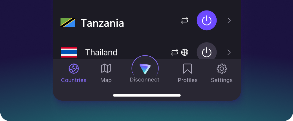 Our kill switch protects you by blocking traffic to and from your device if you lose connection to the Tanzanian VPN server. This important feature ensures your data and true IP address aren’t compromised if a server malfunctions. It also protects you while you’re switching servers.