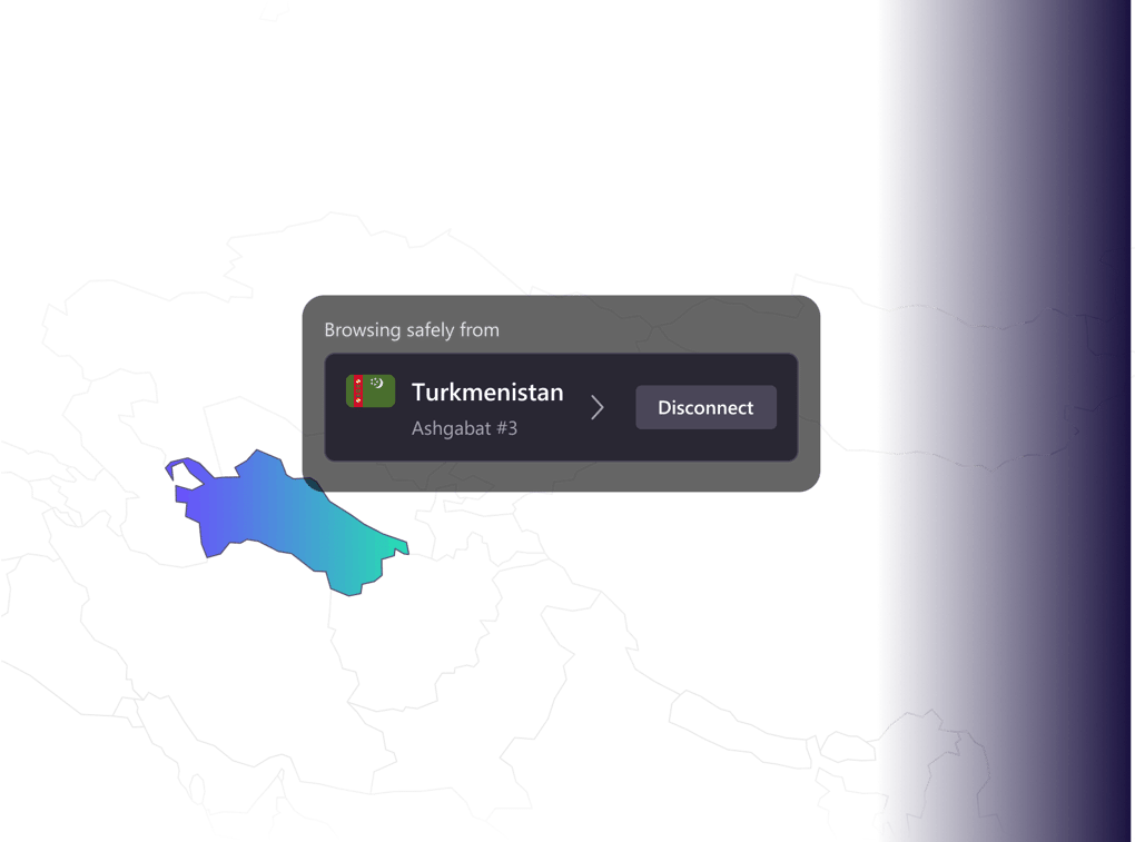 Connect to a Turkmen server to surf the internet with ease, privacy, and security.