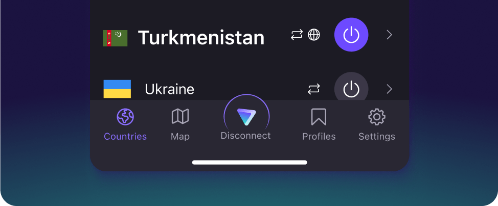 Our kill switch protects you by blocking traffic to and from your device if you lose connection to the Turkmen VPN server. This important feature ensures your data and true IP address aren’t compromised if a server malfunctions. It also protects you while you’re switching servers.